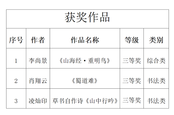 近日,第三届四川艺术节四川文华奖美术奖评选结果公示,我市3件作品获三等奖,其中美术作品1件,书法作品2件。