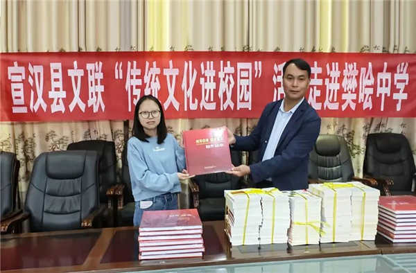 活动中,宣汉县文联精选《土家薅草锣鼓歌谣选》《巴韵宣汉》《风华百年 锦绣宣汉》《溪风书法集》等文艺作品200余册赠送给该校,希望学子们能够通过阅读这些书籍,丰富精神文化生活,了解家乡民风民俗,提升文化素养。