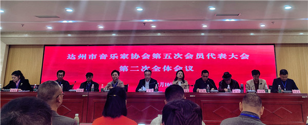 市音协第四届主席团主席赵英在会上作题为《承前启后 继往开来——努力开创达州音乐事业新篇章》的工作报告。报告中感谢了市委宣传部、市文联的正确领导和省音协的关心指导,并从学习提高,组织建设,音乐创作,音乐活动,音乐教育等方面回顾了市音协五年来组织和参与的活动情况,以及各位艺术家取得的成绩。随后,赵英从继续学习,扎实践行;抓创作出作品,继续注重育新人;继续抓好合唱艺术;继续抓好下基层活动;继续作好音乐人才培养基地工作;加大对新文艺群体优秀人才的发掘和培养;继续加强与各县、市(区)音协的密切联系和工作交流;继续推动与各专委会的交流等方面对新一届主席团未来五年的工作给予了意见建议。