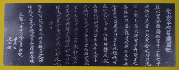 窃以丰登胜概,垭洼号古社之平。从始开荒,昔曰大黄舍宅。时在元符二载,月应夹钟,当万卉萌芽之盛,阳和煦气已临。前代府君王雅与令男王敏,得建溪绿茗,于此种植,可复一纪,仍喜灵根转增郁茂。敏思前代作如斯活计,示后世之季子、元孙,彰万代之昌荣,覆茗物而繁盛。至于大观中,求文于蓬莱释,刻石以为记。可传体而观瞻,历古今而不坏。后之览者,亦将有感于斯文也。 诗曰:筑成小圃疑蒙顶,分得灵根自建溪。 昨夜风雷先早发,绿芽和露濯春畦。 大观三年十月念三日 王 敏 记 弟 王古 兄 王俊 笔者专业从事万源地方历史的总结及研究二十余载,就《紫云坪植茗灵园记》摩崖石刻收集了一些资料,并有心得体会。在此,我主要想就这一摩崖石刻的词语考释、产生背景、历史意义、现实作用和重要歧义等方面作一简要解析。 (《紫云坪植茗灵园记》以下简称《植茗灵园记》) 一、《植茗灵园记》考释 这是一篇铭文,虽撰于宋代,但文字内容大都明白如话,通俗易懂,只是个别词语需作一些解释。铭文大意是:王氏父子在大巴山中的古社坪开荒地,辟草莱,引进了闻名天下的建溪茶树规模种植。经过十余年的惨淡经营,终使茶园郁茂葱翠,呈现一片欣欣向荣的景象。为了纪念前辈创业之功,激励后人继承祖业,在茶园开辟将满十二年,也就是“一纪”之时,主持家政的嗣子王敏恳求蓬莱僧人撰写了这篇铭文,并赋诗一首,刻石以记之,以为“后之览者,亦有感于斯文也”。事实证明,近千年后的今天,凡观者无不感叹。这一目的已经达到,并将继续产生深远影响。 铭文中个别词语和有趣情节考释: 紫云平:平,通“坪”。《说文》:“坪、地平也”。西南方言中,山间平地称之为“坪”;“紫云坪”应是当时新拟的地名,该地大地名当是“古社坪”,小地名是“大黄舍宅”;“紫云”之得名一是因为这里的地理位置使然。古社坪海拔1000米,属阶梯状宽台峡谷地形,林木葱郁,足下是无垠的云海,向南远眺,众山尽小。每当夕阳西下,霞光万道,紫气东来,霓虹幻景,美不胜收;二是因为古人常以“紫云”、“紫雾”形容茶叶之上品,更重要的是“紫云”为祥瑞之云,取其吉祥之意。 灵园:即灵草之园。古人把茶称为“灵草”。 元符二载:元符是宋哲宗赵煦年号,二载即二年即公元1099年。 月应夹钟:即夏历二月。古人以十二律配十二月。 阳和煦气已临:原文中“煦”字中“句”缺“口”,是为避宋哲宗赵煦的名讳,故意减少笔画。同时,这一特征也是证明《植茗灵园记》为北宋摩崖石刻古迹的确凿证据。 前代府君王雅与令男王敏:该铭文以王敏第一人称题记,而王敏自称“令男”,实为一常识性错误,有自吹自擂之嫌。但责任不在王敏方,因该铭文是请人代为撰写,也许王敏等人皆为目不识丁者或识字不多。 可复一纪:古时十二年为一纪。 求文于蓬莱释:“蓬莱”即山东蓬莱。“释”泛指佛教,释子即和尚。这位“蓬莱释”可能是云游四方来到古社坪。因当时这里的丛林云雾间,隐设有一座南朝梁武帝时敕修的庙宇?D盘龙寺(今有遗址及石佛三尊)。而且该和尚具有相当的茶叶知识和一定的写作能力。 余不一一。 二、《植茗灵园记》产生的历史背景 王敏等在植茶十余年后的大观三年撰文刻石为记,绝非偶然,有它的必然性。 茶的发现和利用始源于古代的荆巴间及湘西一带。秦汉时,蜀茶率先兴盛,“蜀土茶称圣,蒙山味独珍”。尔后,佛教与茶相得益彰。隋唐时,“穷春秋,演河图,不及载茗一车”。在当时贩卖茶叶已是利润极高的行业。僧侣、士大夫等有闲阶层对茶及茶文化的需求增大,研究茶叶栽制技术逐渐深入、广泛。另一方面,公元四世纪以来,我国北方战乱不息至南宋,中国文化中心南迁,比较进步的农业生产技术向东南转移。江、浙、皖、闽茶业后来者居上。因而形成了“唐人首称阳羡,宋人最重建州”的茶业技术和茶叶品质声誉转移的势态。惹得贵为天子的宋徽宗赵佶也兴趣盎然,在公元1107年撰写了《大观茶论》二十篇。其名句有:“建溪之贡,龙团凤饼,名冠天下”。“采摘之精,制作之工,品第之胜,烹点之妙,莫不盛造其极。”在天子论茶、文人学士纷纷崇尚建茶的时代潮流中,王氏父子面对自己经过十年耕耘的茶园,“仍喜灵根转增郁茂”,感概万千,于是抒前人之情怀,也附庸风雅一回,请人撰文于大观三年(1109)刻石以记之,当属情理之中。 三、《植茗灵园记》的意义和影响 《植茗灵园记》所提供的实录表明,早在千年前,万源地区的种茶人就已具有引进优良茶种意识,实属难能可贵。 万源是古老的茶区之一。秦岭及大巴山是我国南北气候和人文景观的分水岭,茶树由原产地向北推移,树型由乔木?D小乔木?D灌木演变。叶型由大叶?D中叶?D小叶演变。形成了茶树种植资源的多样化。万源有小乔木、灌木,有大叶、中叶、小叶类型。宋代朝廷用川茶易马支撑战争,严令生产粗茶,束缚了四川各地生产、技术、茶类发展。万源闭锁川东北一隅,经济、文化相对落后,对茶树品种的选育和需求没有迫切的需要。但王敏父子却能于宋代引进茶树良种在万源种植,实属难能可贵,开了万源引进茶种之先河,对于万源地区植茶史的发展有巨大的推动作用;再是王敏能将他们植茶轶事以铭文的形式刻于崖壁上,“示后世之季子、元孙,彰万代之昌荣,”留下了宝贵的植茗石刻文字资料,具有深远的历史意义和现