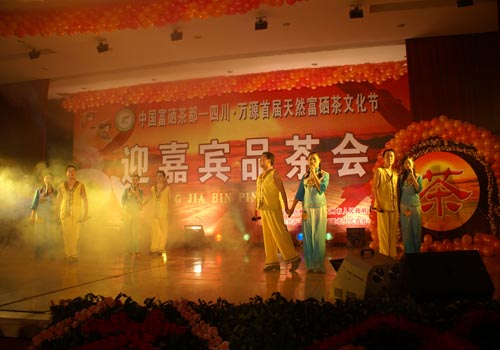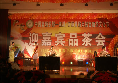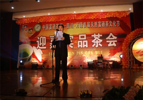 4月7日晚,四川•万源首届天然富硒茶文化节迎嘉宾品茶会,在万源大酒店大会议厅开幕。所有来宾及本市陪同领导出席了晚会。晚会在市委副书记、市长王善平的致辞中拉开帷幕。